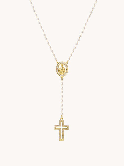 Grace Pearl Cross Lariat Necklace