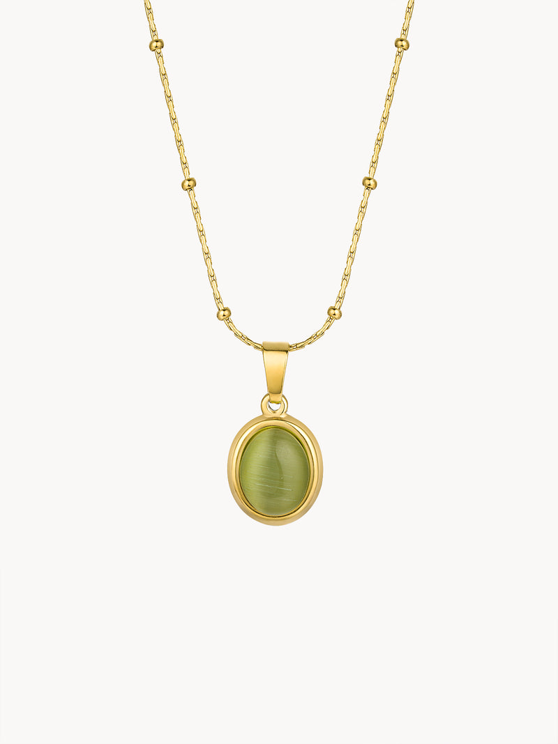 Green Cat's Eye Oval Pendant Necklace