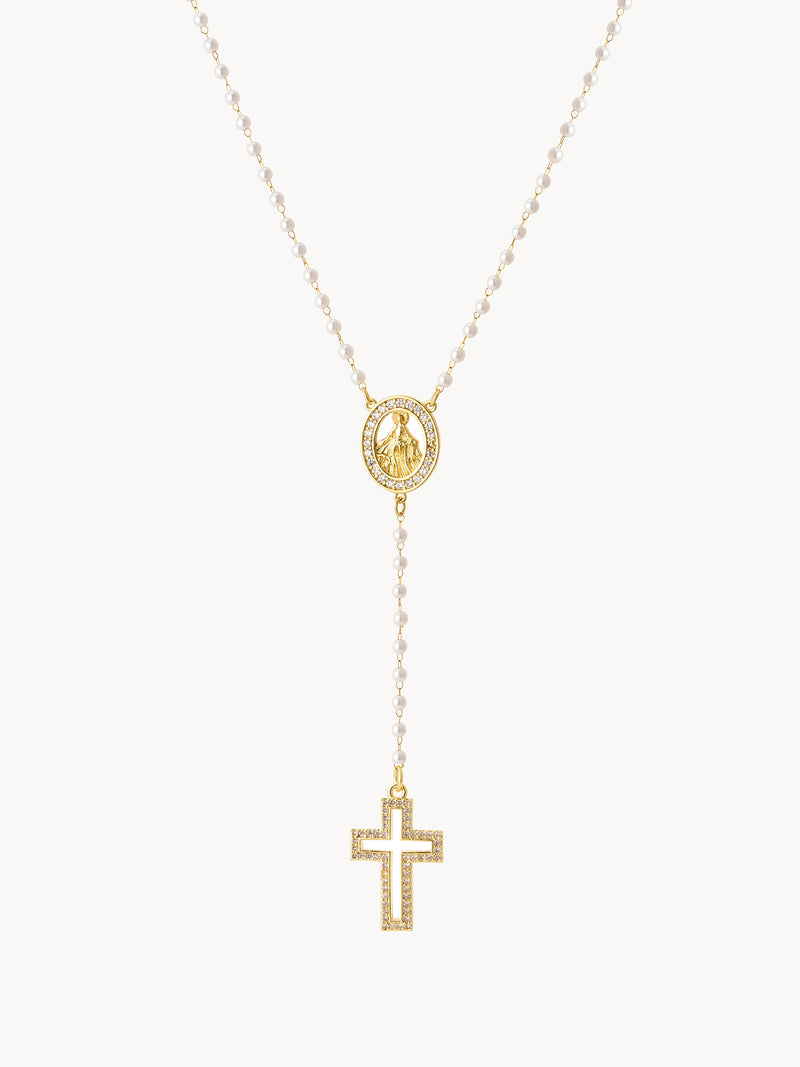 Grace Pearl Cross Lariat Necklace